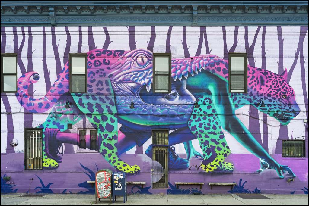 Si l’on s’attache autant à Bushwick, peut-être est-ce à cause ou grâce à la disparition de 5 Pointz du Queens, haut lieu de la culture du graff à New York qui, après 2013, avait laissé presque exsangue l’expression d’un art pourtant symbole d’une âme urbaine bien vivante. Et puisqu’un endroit remplace un autre, on n’oserait faire de constat bien amer, qui serait si réducteur, puisque Bushwick était voué à s’épanouir seul, ou à côté de son illustre voisin. C’est autant le désastre que l’essence même d’un art qui renaît, ou qui avait déjà essaimé, comme en 2012 dans ce quartier de Brooklyn avec The Bushwick Collective initié par Joseph Ficalora, car c’est bien ici qu’il y trouve un terrain si fertile.