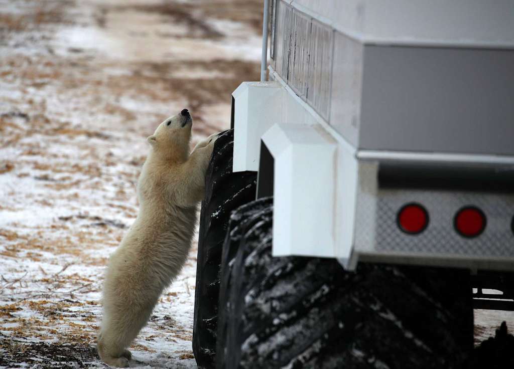 Même si la saison la plus propice pour voir l’ours polaire se situe entre octobre et novembre, on peut en apercevoir toute l’année et donc aussi en été. En automne toutefois, les ours viennent se rassembler sur la côte de la Baie en attendant que la glace se forme pour aller chasser le phoque. Ils sont nombreux, près d’un millier à s’aventurer dans les contrées alentour à Churchill, c’est pourquoi il n’est pas rare d’entendre résonner l’alarme pour les éloigner quand ils sont trop proches. Il existe même une prison qui leur est dédiée, réfrigérée, où on se garde bien de les nourrir et de leur donner l’envie de revenir.