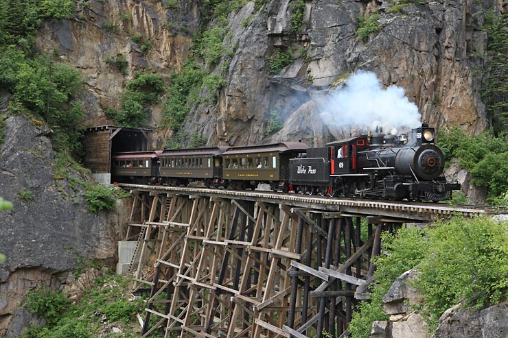 On privilégie plutôt, en bon touriste flemmard puisqu’on aime à se laisser porter, la voie de chemin de fer menant jusqu’à Carcross, depuis la petite bourgade d’Alaska justement: la White Pass Yukon Route. L’occasion de franchir le col White sans trop d’efforts, ne faisant que profiter du panorama grandiose que ce genre d’expédition peu fournir. Attention, ce train touristique n’est accessible qu’aux beaux jours, c’est-à-dire de mai à septembre. Dans un futur peut-être pas si éloigné, le trajet rouvrira jusqu’à sa destination originelle, Whitehorse.