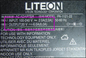 Dans cet exemple, l’appareil supporte le voltage allant de 100 à 240 volts et les fréquences 50 et 60 hertz.